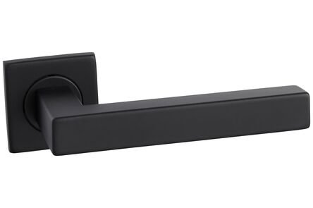 Set binnendeurbeslag, voor zowel binnen- als buitenzijde van de deur. Zwart gepoedercoat.