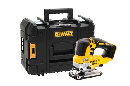 De 18V XR brushless decoupeerzaag heeft een variabel toerental, veiligheidsschakelaar en een elektronische motorrem voor snelle en gecontroleerde zaagsneden en meer veiligheid. De optimale 3-traps pendelzaagslaginstelling regelt de agressiviteit van de zaagbeweging. Dankzij de sleutelvrije verstelbare zool met anti-kras opzetzool kan naar beide kanten tot 45° geheld worden. Standaard meegeleverd- Anti-kraszool – Ingebouwde stofblazer, AirLock compatible – Anti-splinter zoolinzet – Verstelbare zijhandgreep – TSTAK koffer.