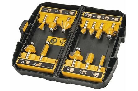 De DeWalt 12-delige Frezenset DT90016-QZ is een universele freesset, geschikt voor alle bovenfrezen met 8 millimeter spantang.