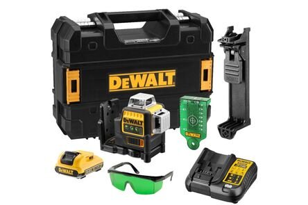 De DeWalt kruislijnlaser behoudt volledige helderheid voor perfecte zichtbaarheid. De kruislijnlaser projecteert heldere horizontale en verticale lijnen. Standaard meegeleverd- 10,8V 2Ah accu – Lader – Laserkaart – Laserbril – Laserhouder – Koffer