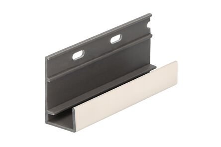 Keralit Omrandingsprofiel bij verticale bevestiging. Het Omrandingsprofiel wordt gebruikt voor het insluiten van de panelen aan de onderzijde. Dit profiel heeft openingen waardoor het water weg kan.