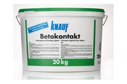 Met knauf betokontakt worden gladde, zwak of niet zuigende steenachtige ondergronden binnenshuis voorbehandeld om de hechting van de gipspleister te verbeteren. Knauf betokontakt vormt een hechtbrug tussen de ondergrond en droging van de aan te brengen gipspleister.