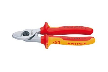 Knipex. Voor het knippen van Cu- en Al- kabels, enkel- en meerdradig. Niet geschikt voor staaldraad en hardgetrokken koperdraad. Geharde en nauwkeurig geslepen snijkanten.