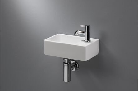 De lavigo fontein is geschikt voor wandmontage. Er zit geen overloopgat in de wastafel/fontein verwerkt, waardoor het een strakker geheel wordt.