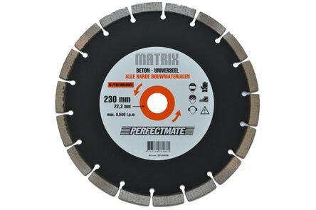 Matrix diamantzaagblad voor alle harde bouwmaterialen. Beton/Universeel. Exacte positionering van de diamanten.