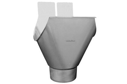 Een trechteruitloop vormt de overgang van de mastgoot naar de hemelwaterafvoerbuis. De trechteruitloop wordt om de goot heen gemonteerd. Met het RHEINZINK aftekensjabloon kan het gat in de goot afgetekend worden.