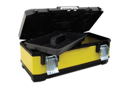 Metalen/kunststof gereedschapskoffer voor het handig opbergen en transporteren van gereedschappen met uitneembare gereedschapsbak