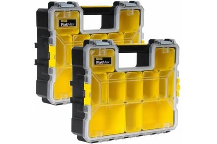 Het FatMax systeem van Stanley zorgt er dus voor dat u onder andere productiever en geordender kan werken.Stanley duopack organizer FMST1-70740 is een diepe organizer met veel opbergruimte.