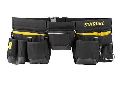 De Stanley gereedschapsgordel heeft verschillende zakjes om uw gereedschap en schroeven bij de hand te houden.