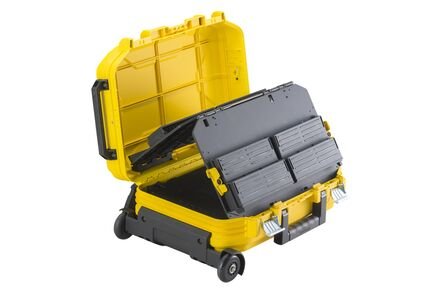 Stanley FatMax technicus koffer met wielen. Een robuuste, glasvezelversterkte veiligheidskoffer met deksel en metalen sluitingen. De koffer heeft een stevige handgreep met rubbercoating voor betere grip en optimaal comfort.