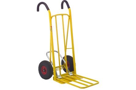 Steekwagen van staal met extra diep uitklapbaar draagvlak. Veilig werken en eenvoudiger te kantelen dankzij de verlengde hefboom en de ergonomische kunststof handgrepen.