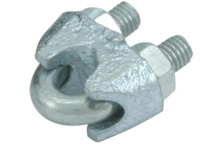 Waar staalkabels afgespannen dienen te worden, is een staaldraadklem nodig. Met ronde schoot, sluitlus en gat voor hangslot.
