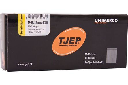 Tjep TF-18 Mini Brads TF-18, 32 mm Glad Vlakke kop RVS A4 strip 5000st 1,2x32mm