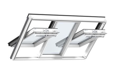 De Velux 3-in-1 tuimelvenster zorgt voor een panoramisch uitzicht, een overvloed aan daglicht en goede ventilatie voor maximaal comfort. Extra slanke kozijnen laten meer daglicht binnen en bieden een esthetisch design. Het 3-in-1 dakraam heeft twee te openen dakramen met een handmatige bediening en in het midden een vast dakraam in dezelfde maat.