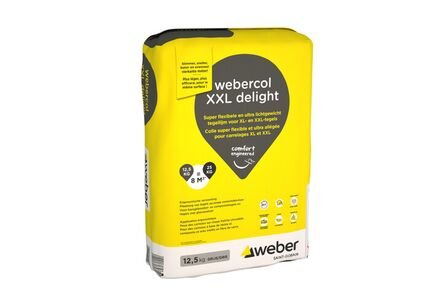 Webercol XXL Delight is een grijze, lichtgewicht poedertegellijm van 12,5 kg, speciaal ontwikkeld voor het verlijmen van grootformaat tegels binnen en buiten. De lijm is flexibel, stofarm en biedt een uitstekende verwerking en hechting.