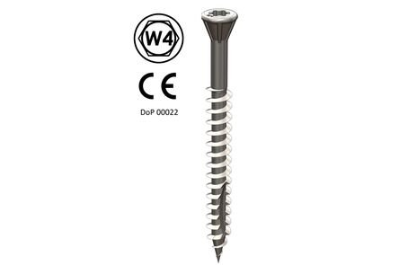 Woodpecker SUS410 hardhoutschroeven zijn voorzien van een anticorrosiebehandeling (2.000 uur zoutsproeitest). De bevestigers hebben een zeer hoog indraaimoment. Voorboren is overbodig.