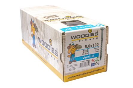 Woodies Ultimate schroeven zijn ontworpen met een speciale punt, waardoor je zonder voorboren in bijna elke houtsoort kunt werken. Deze punt zorgt voor meer grip en vermindert de kans op splijten tijdens het indraaien. Onder de kop bevinden zich freesribben die het materiaal ruimen, zodat de kop mooi verzinkt. De unieke schroefdraad maakt het eenvoudig en snel om de schroeven in het hout te draaien, wat de kans op breuk vermindert en de levensduur van accu’s verlengt. Elke doos bevat een gratis bitje.